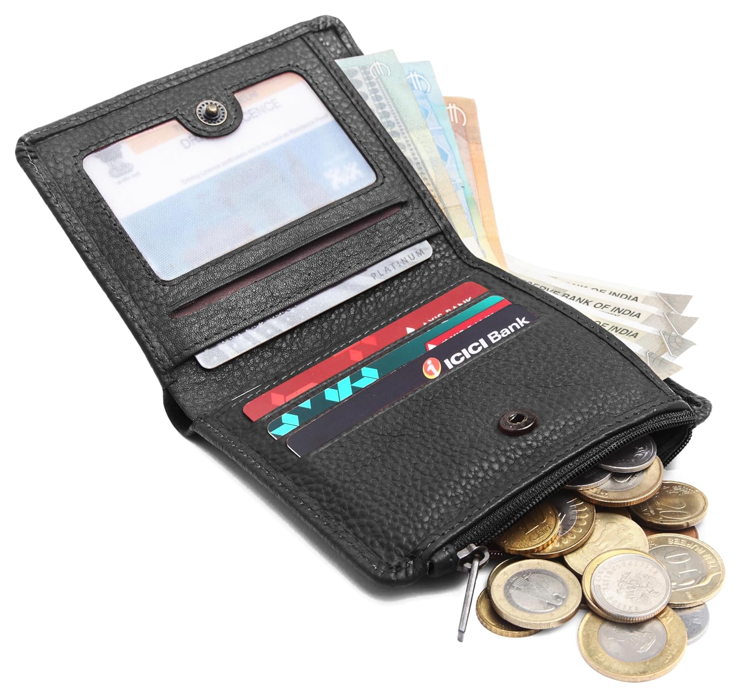 - 💵 Multiple Currency Compartments: Dual compartments for cash, receipts, or bills – fits Indian and international currency with ease.