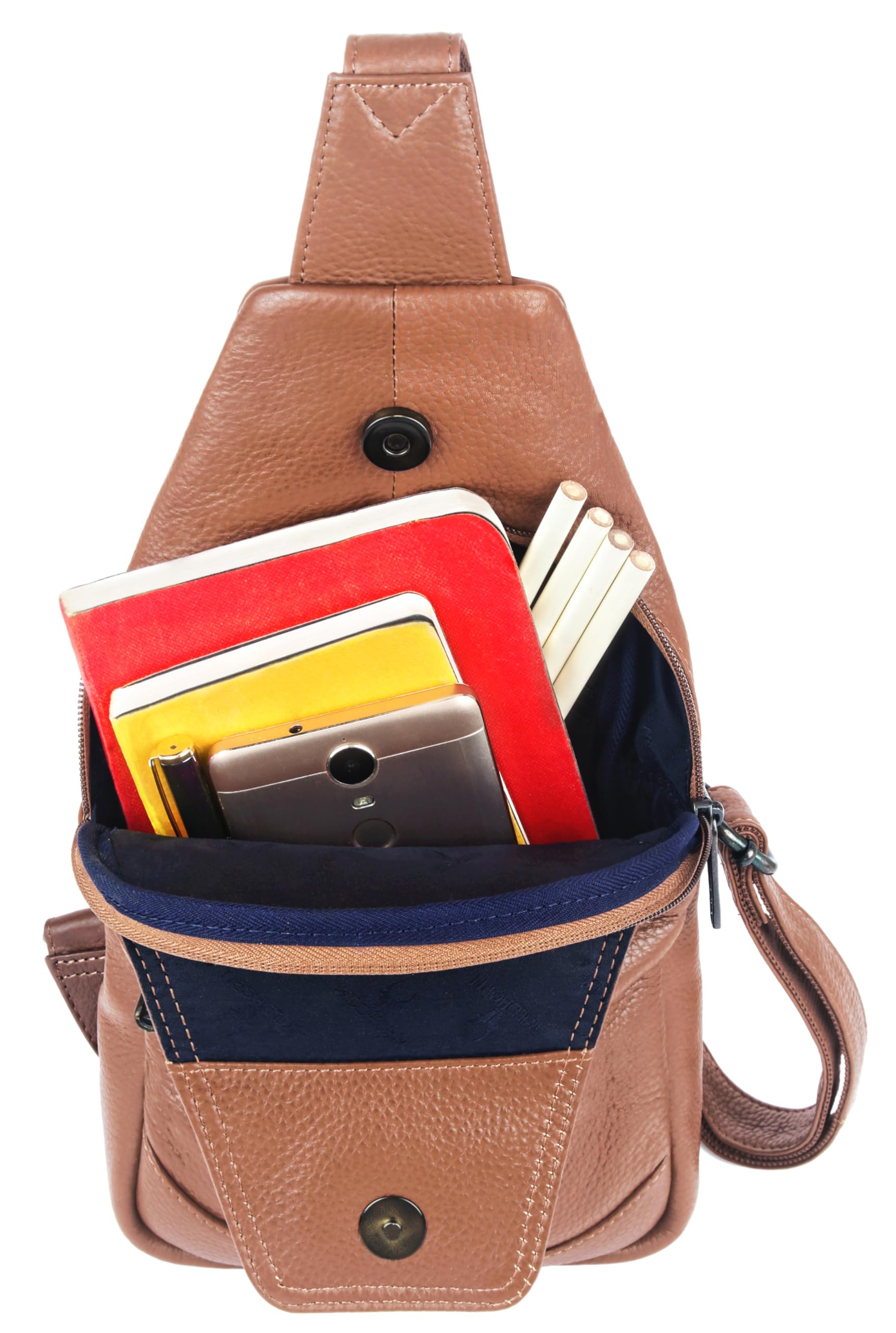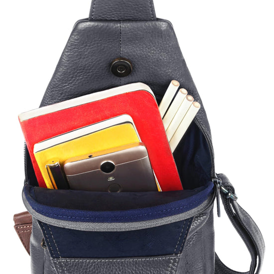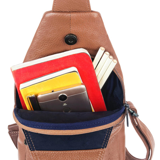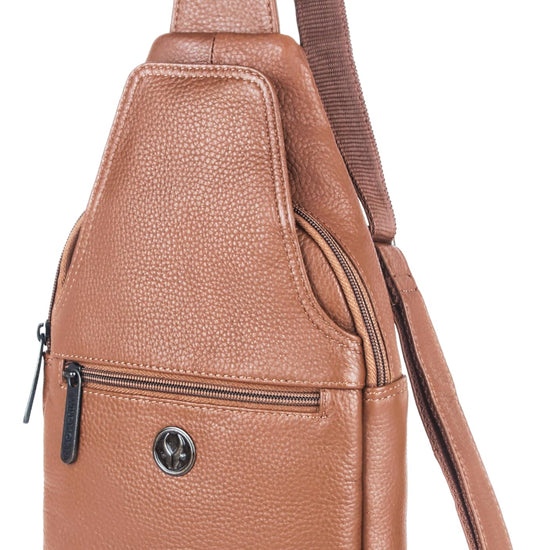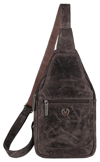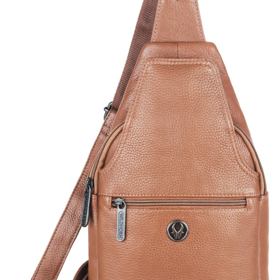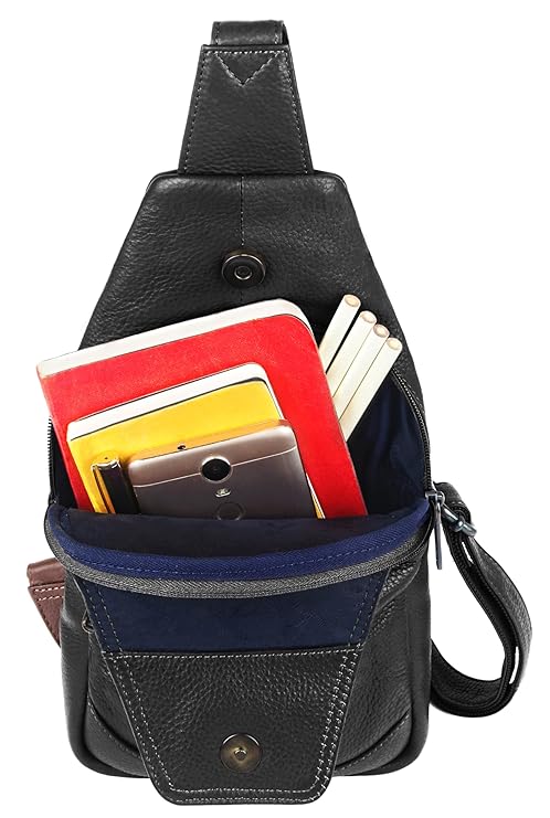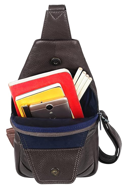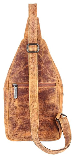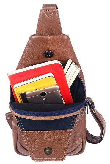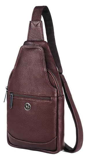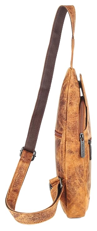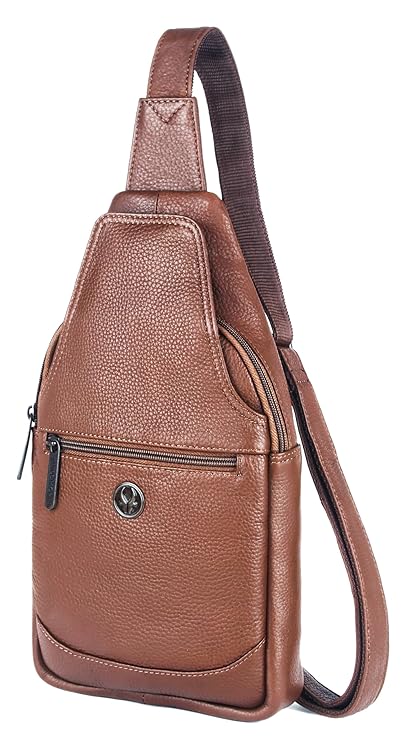 - MATERIAL: 100% Genuine Leather. The sling bag is made of high-quality full-grain leather with a durable and ergonomic design.
