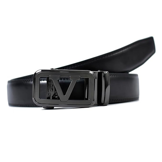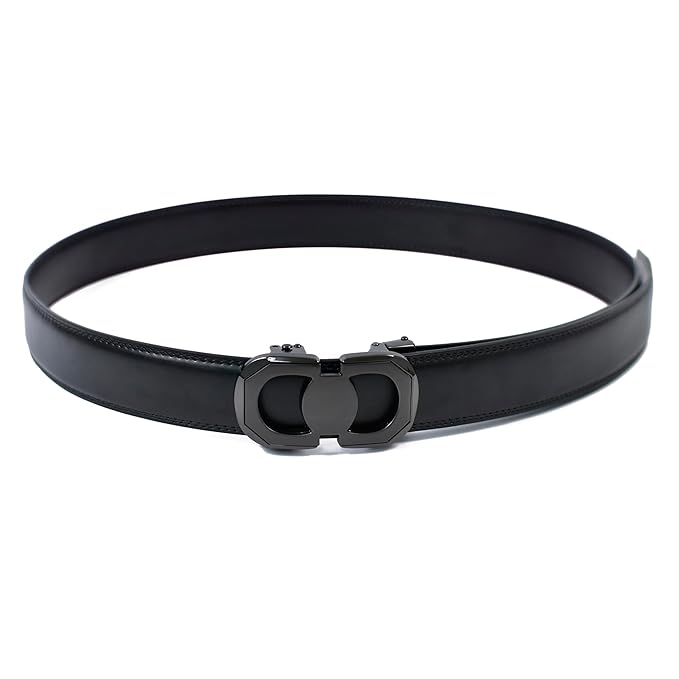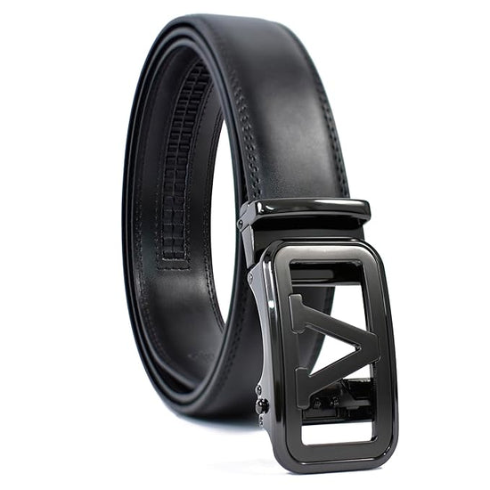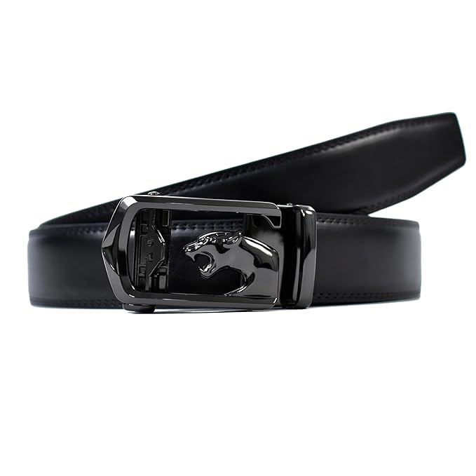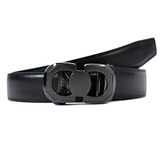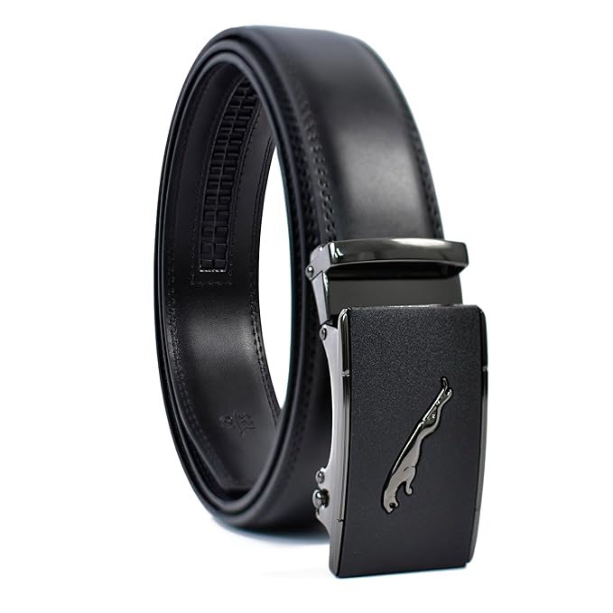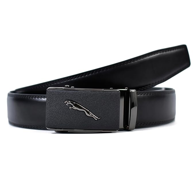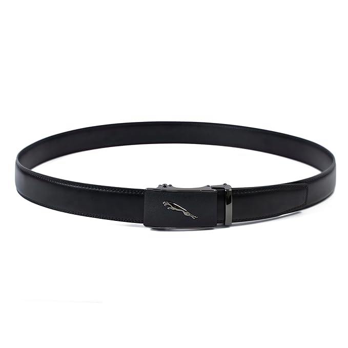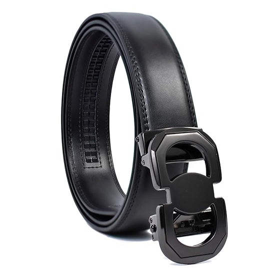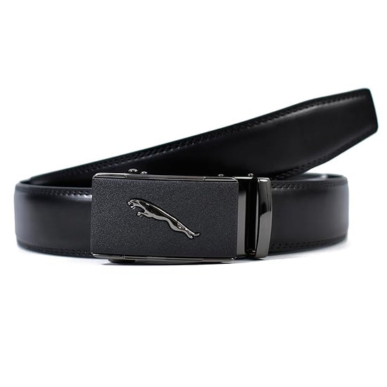 Genuine Leather belt Strap with 2 Interchangeable Buckles (Black & Gold) | Formal & Casual Wear Adjustable Belt | Automatic lock leather belt for men